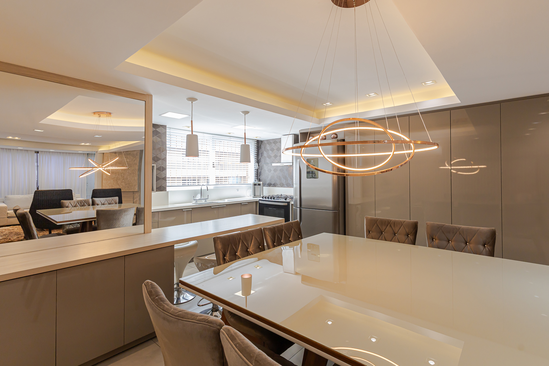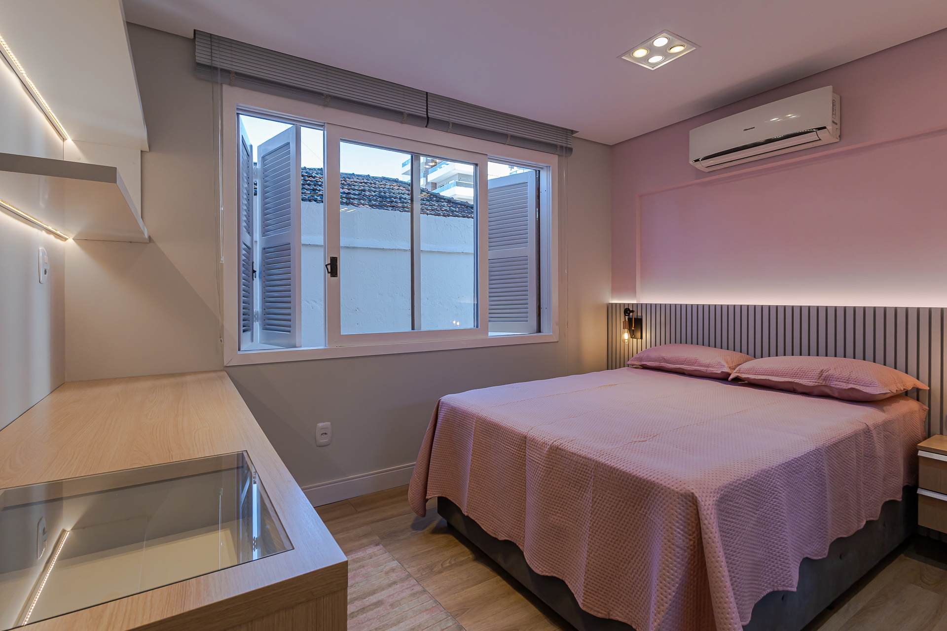 Um apartamento de 160m², 01 vaga de garagem, 03 dormitórios, sendo 01 suíte com closet e sacada ensolarada e mais 01 ambiente transformado em escritório. O apartamento foi finamente reformado e mobiliado através do execelente trabalho do escritório de arquitetos da LP ARQUITETOS. Living amplo junto a cozinha com lareira, área de serviço separada e com banheiro, sacada com área gourmet e churrasqueira. Os outros dois quartos são mobiliados e decorados. Banheiros equipados com aquecedores de toalhas. Possui ar condicionado split em todos os ambientes (06 no total) e foi instalado uma infraestrutura de WIFI de última geração, proporcionando uma internet de qualidade para todos os ambientes.